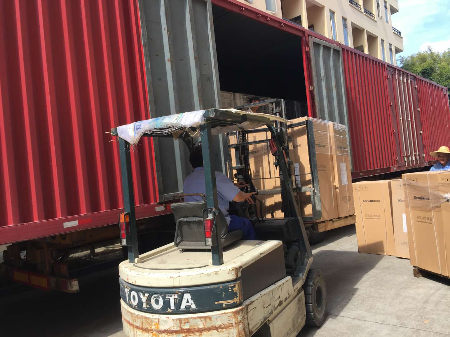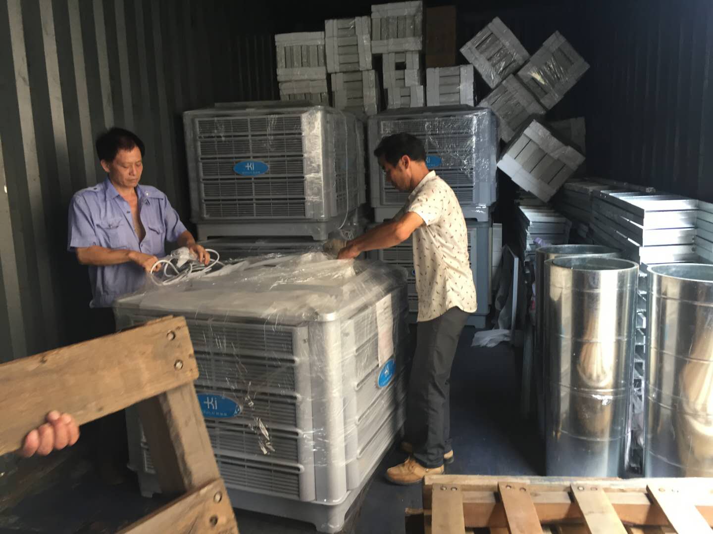 22.5米車廂整整一車科瑞萊工業(yè)環(huán)保冷風(fēng)機空調(diào)KD18機器整裝待發(fā),謝謝客戶對我們科瑞萊品牌的信任與支持。
